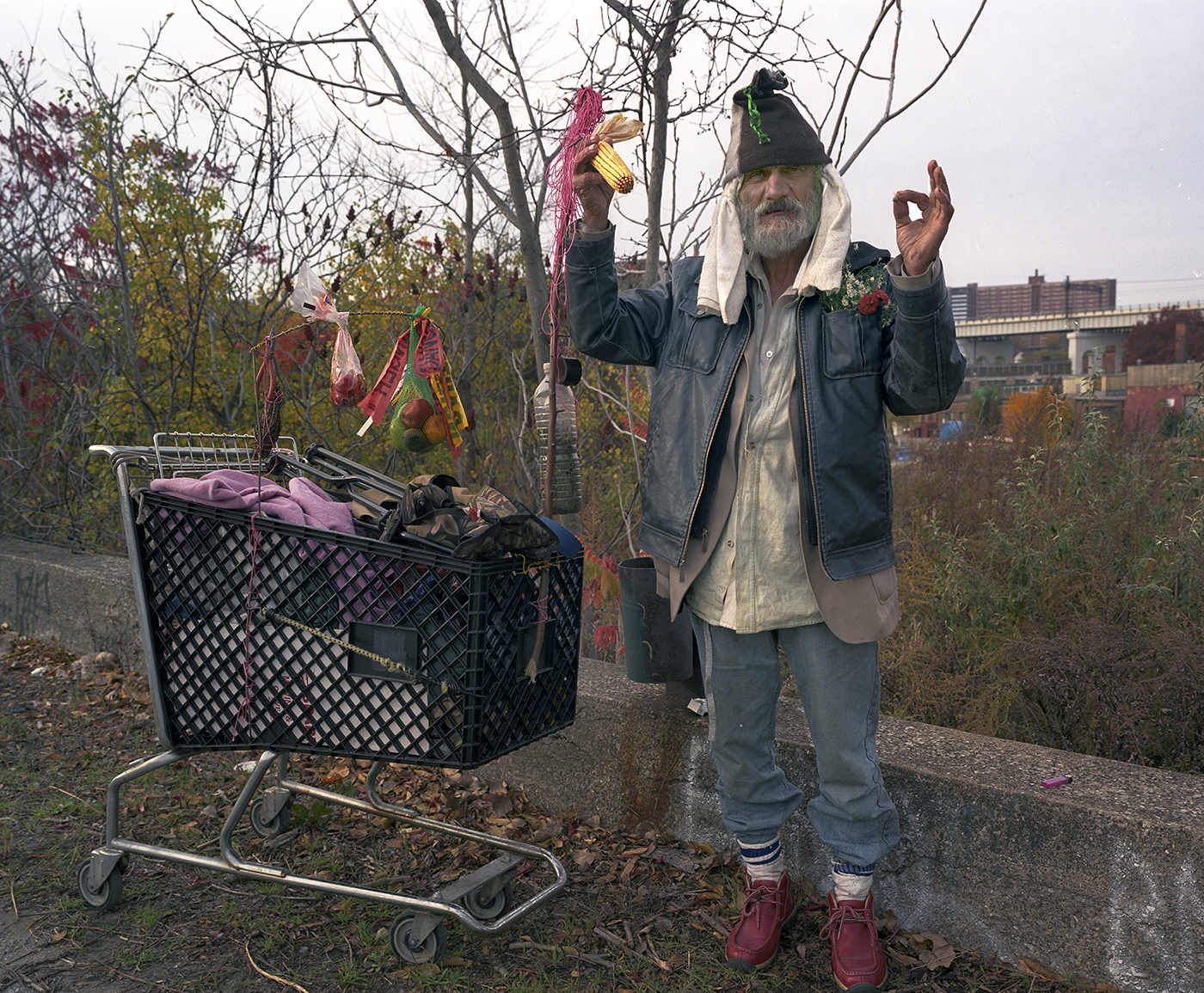 Here Ignaciso is celebrating the annual corn harvest and solistice in the autumn air of the city. The message is clear and direct, it was a good year, much corn, it’s OK.