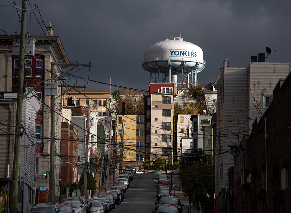 Looking up Ash Street from Linden Avenue in an area of Yonkers that is like the old Lower East Side of Manhattan, but with hills.
