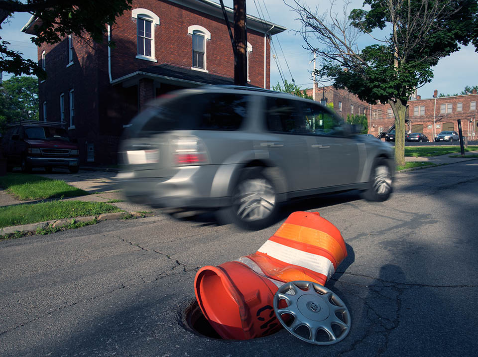 In a city, if you kept your eyes down to the street, you could tell a lot about it by the amount of its holes, their size, duration and depth. A city with big-ass potholes is gonna be different from one with none. A city that has the most and the biggest potholes is certainly one to look at.