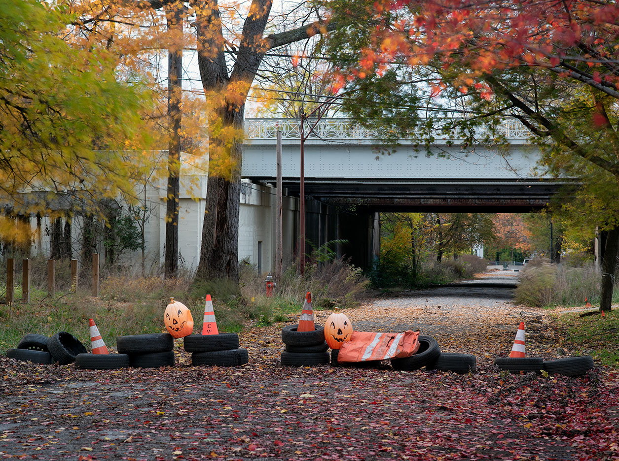 The reality is that East Cleveland has fell hard and steadily since the late eighties, further than any city in Ohio and that’s the perception of it because it’s true. People who don’t live there, only drive through it, and with its infrastructure and snail’s pace roads, people mostly drive around it. It’s not a destination, and if you are not one of the many long-term residents, it’s the second last station on the line or the only place found that is affordable. As a place in most folks’ minds it’s too dangerous to even stop. It’s a phenomenon that goes a long way to make people avoid driving through East Cleveland at all. Can you imagine cruising up a street late at night, the street lights are out, and there is no sewer cap in the middle of the street. And for the people who live there it’s a daily grind. Navigating the streets requires manual vehicular slalom skills to avoid expensive repairs. One day on 152nd Street i watched a sad theatre of bent rims, broken axels and flat tires while shooting the holes there, and wouldn’t ya know it, a guy had a garage right there, and did a lot of work.