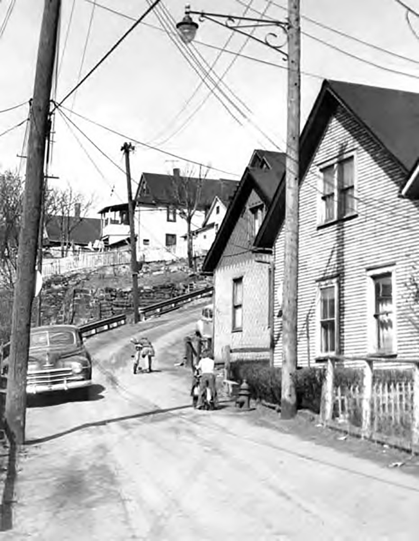 The south side of Pershing Avenue. at the bridge in 1981, across the street from the Kocher home. Bars, homes, stores and all that is needed to live in a neighborhood without a car, was, at one time, a feature of the Kocher family neighborhood until the bridge closed.