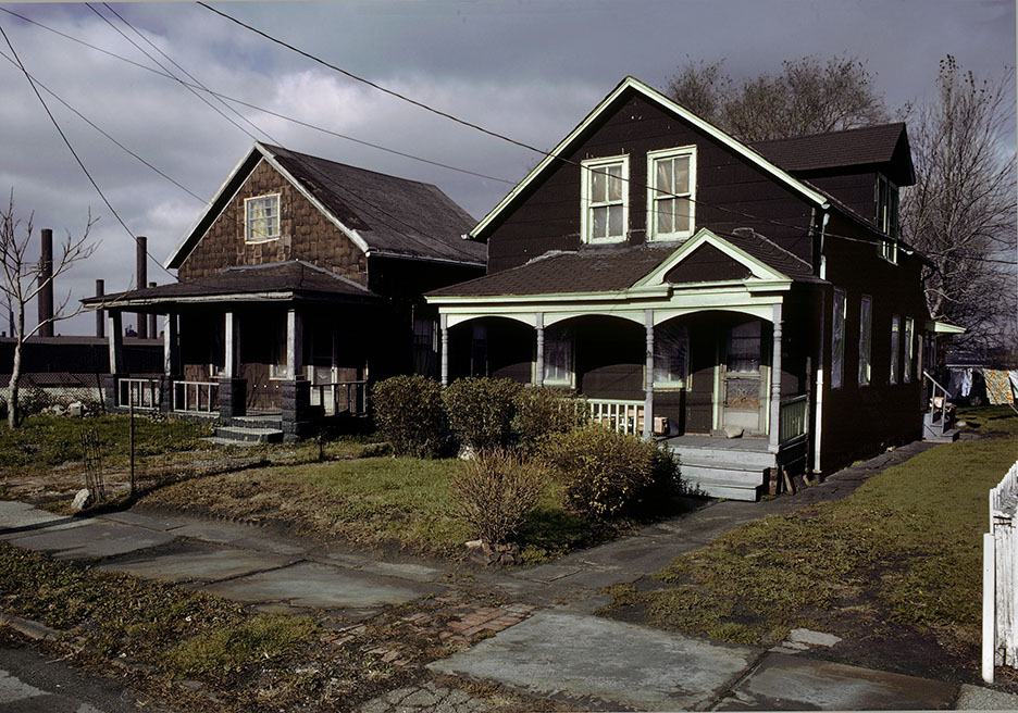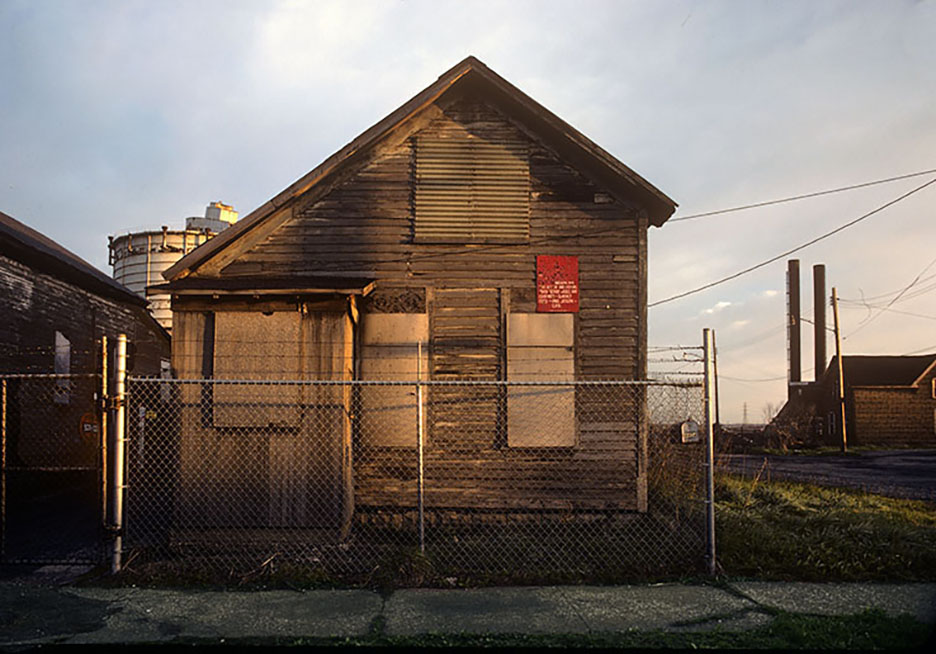House, East 40th Place, 1989, surrounded by the Republic Steel coke plant, Pershing Avenue and the old Clark Avenue Bridge is to the right.