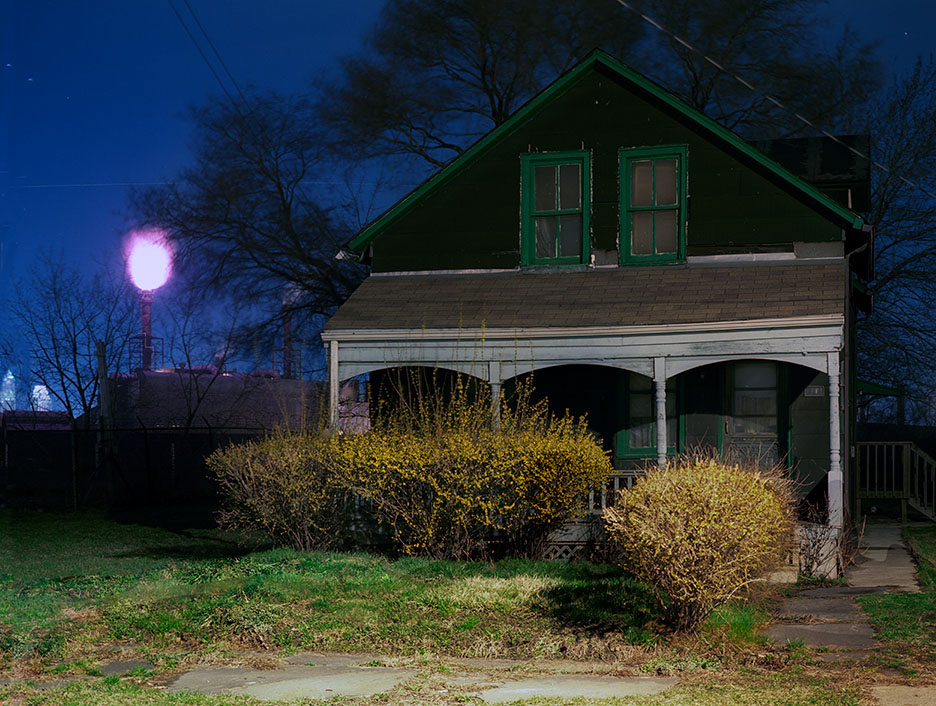 I’ve worked around and shot all the steel mills of the Rust Belt. Within the towns and cities of the Rust Belt, the neighborhoods closest to the mills all share one thing in common, they are poor, and at best, on the economic level, working class. Nothing fancy, no people that are well-off, and, in fact, usually dirty, gritty and, of course, polluted. The racial and religious make-up of these places doesn’t interest me too much, Braddock and Gary are predominately black, but formerly white, while in Mingo Junction and Weirton, those closest to the mill happen to be mostly white, and, of course, blacks. AK Steel in Middletown Ohio had mostly white folks living nearby, especially close to the now closed and often criticized coke plant, and their mill in Ashland Kentucky, shut down in 2017, is cut off to any residential neighborhoods by a highway and large commercial strip. Likewise in East Chicago and Gary with the greatest concentrations of blast furnaces in America, highways seal in the vast industrial lands. Not much housing, although there is the famous Marktown neighborhood.