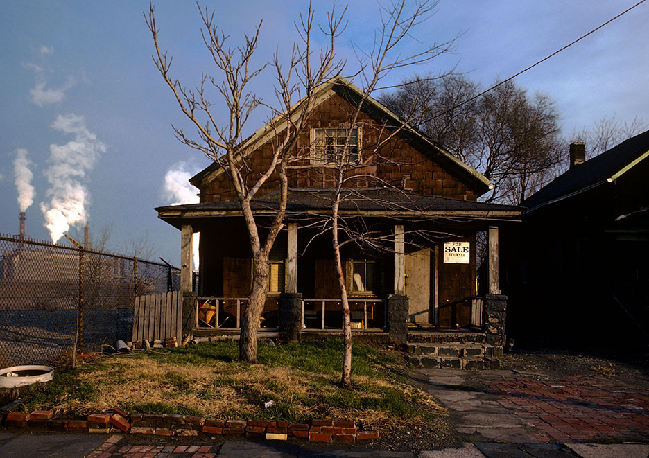 I’ve worked around and shot all the steel mills of the Rust Belt. Within the towns and cities of the Rust Belt, the neighborhoods closest to the mills all share one thing in common, they are poor, and at best, on the economic level, working class. Nothing fancy, no people that are well-off, and, in fact, usually dirty, gritty and, of course, polluted. The racial and religious make-up of these places doesn’t interest me too much, Braddock and Gary are predominately black, but formerly white, while in Mingo Junction and Weirton, those closest to the mill happen to be mostly white, and, of course, blacks. AK Steel in Middletown Ohio had mostly white folks living nearby, especially close to the now closed and often criticized coke plant, and their mill in Ashland Kentucky, shut down in 2017, is cut off to any residential neighborhoods by a highway and large commercial strip. Likewise in East Chicago and Gary with the greatest concentrations of blast furnaces in America, highways seal in the vast industrial lands. Not much housing, although there is the famous Marktown neighborhood.