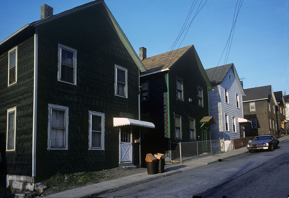 Above – St. Tikhon Street, that sat below St. Theodosius Church, shot, here (the bottom shot), from the Clark Avenue Bridge in 1980. The chimneys on either side is the powerhouse of the old Standard Oil Refinery #1 that was owned by Rockefeller when the city was the center of the birth of the modern American oil industry. (st. tikhon street photo courtesy of cleveland memory project)