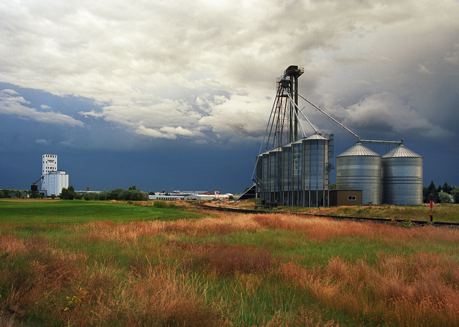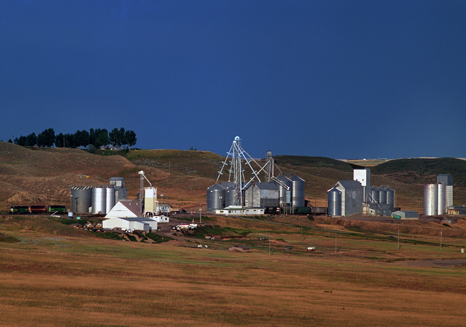 Modern grain elevators in Carter, 1995.