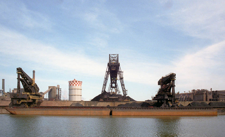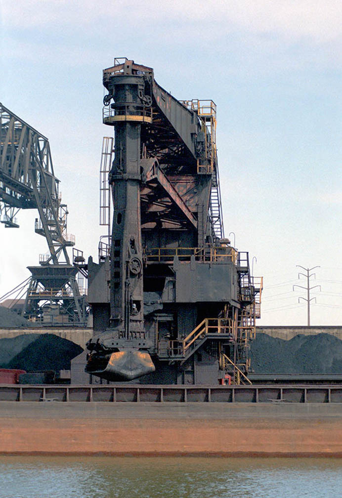The docks had separate iron ore and coal bridges and only coal would arrive by barge from downriver Illinois mines.