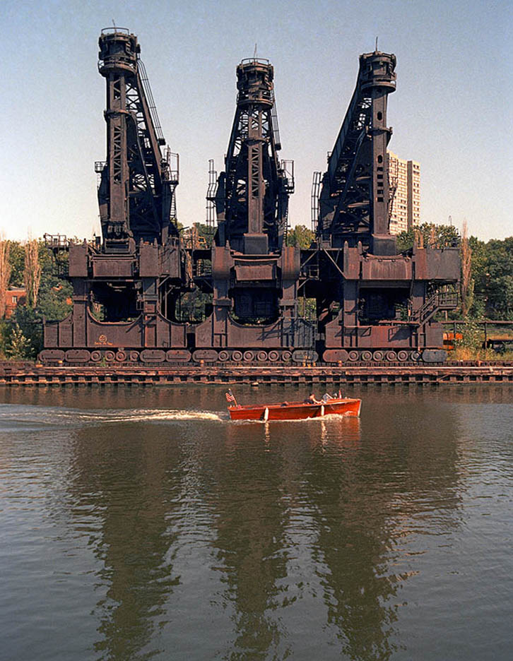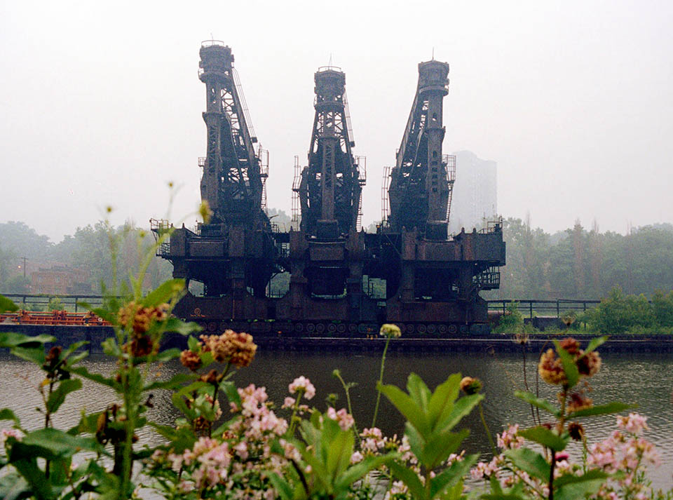 US Steel Central Furnace was built in 1909 as a pig iron plant along along the Cuyahoga River, modernizing an existing mill that had been there since 1881 – the Cleveland Rolling Mill. The Central Furnace closed in 1978 and this is two years later. The Cuyahoga empties into Lake Erie about four miles upriver which meant that the giant ore carriers of the lakes could access the steel mill itself and, with the help of the two 10 ton Wellman Hulets, an entire ship’s bulk cargo can be transferred directly to the ore yards beneath the furnaces they would feed.