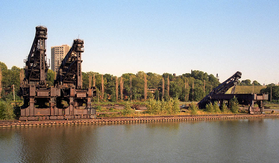 From these docks the iron ore that fed the steel mills in southern and central Ohio was unloaded for a long time. In 1978 and, while a better technology, the self-unloader, was beginning to take hold, the Erie Docks became an early casualty of the effects of Black Monday in Youngstown – the symbolic beginning of what would become, the Rust Belt, as more costly inland mills, with higher costs in transporting ore and coal began to close down.