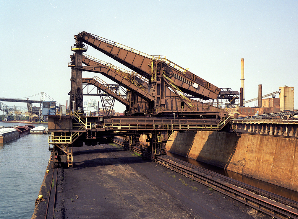 (above) The Chicago Huletts looking north. In the background is the LTV coke plant and another steel mill, Aceme Steel, in the distance in 2003. The machines ran along the river on steel wheels and tracks. The machines, themselves were run on electricity.