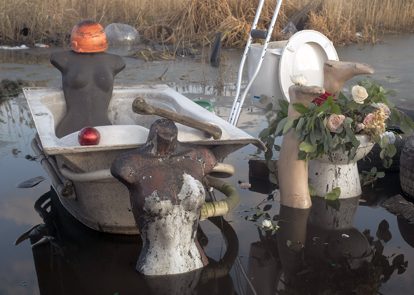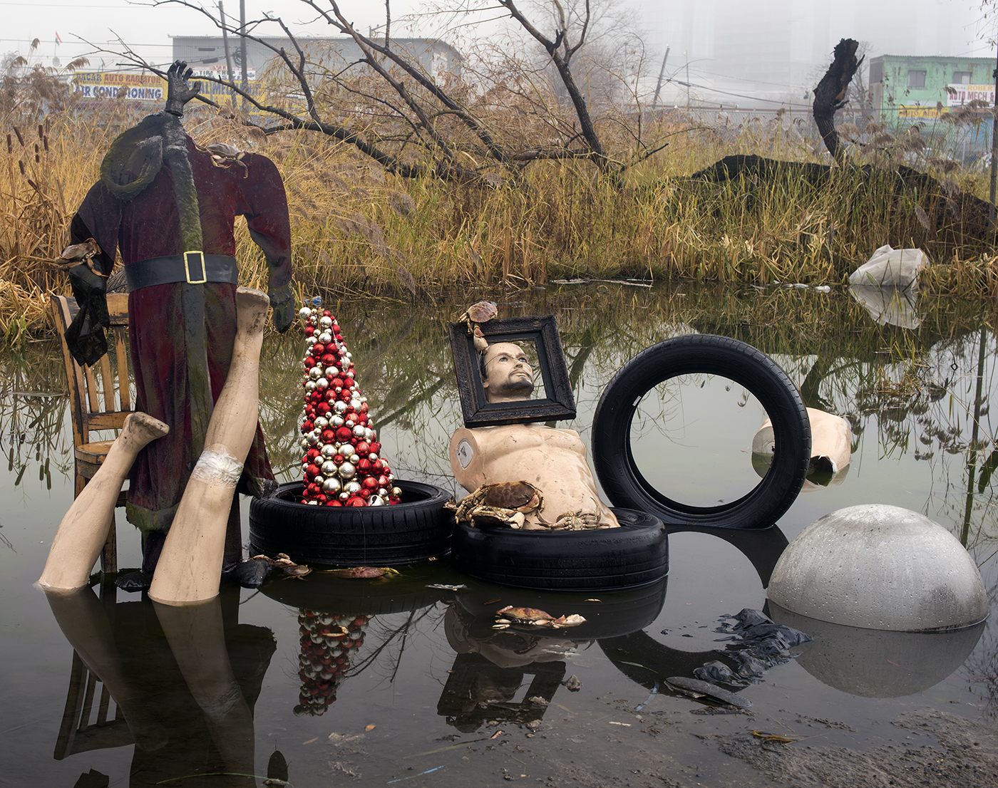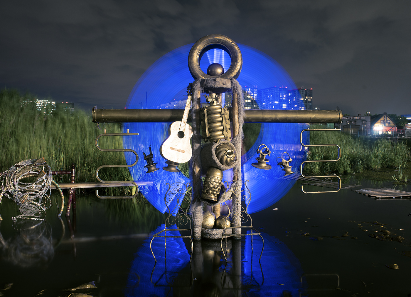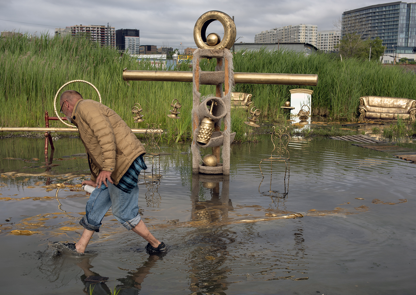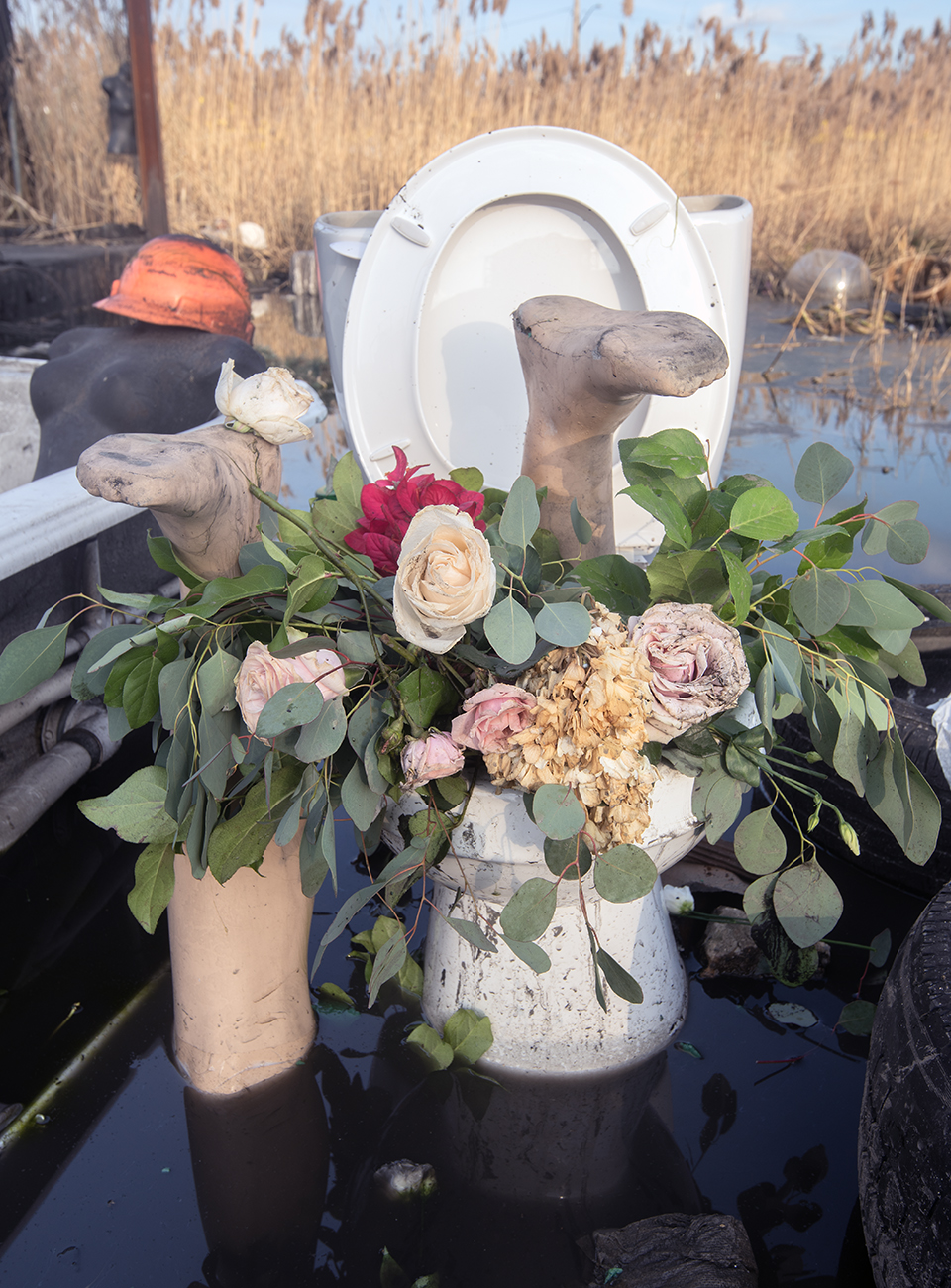 People’s nicknames in the Junkyards were the worst. Like Nacho, a notorious lover of intoxicants and a well-known long-tme junkyards worker, who actually “retired” (retirement in the junkyards is usually jail and death) from the place around the Covid time. It was love, and, compared to his history in the Iron Triangle, was the way to go, since out here time is so often limited for those on the sinking ship. One winter, Nacho, knowing my tastes, is telling me about the angels in the toxic marsh where there were recently scrapyards that were leveled for development, which turned out to be an 800 milliom dollar soccer stadium, ironiclly, displacing some of the sports biggest fans. It took three days of these stories for me to understand what he was saying. Someone had been making these pieces and constructing them on site in the middle of the Junkyards and 1.000 feet from Citi Field. The bigger surprise was the creator, Joe, who, i would meet a month later. Nacho was right. There were white flowing angels in a toxic pond where there were once slavage yards.