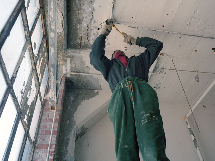 She would stack whatever was available and climb up to the high ceilings to scavenge the last tidbits in the Victoreen Geiger Counter Company. Booger’s lungs could always be heard, mixed in with the sounds of scrapping small stuff.