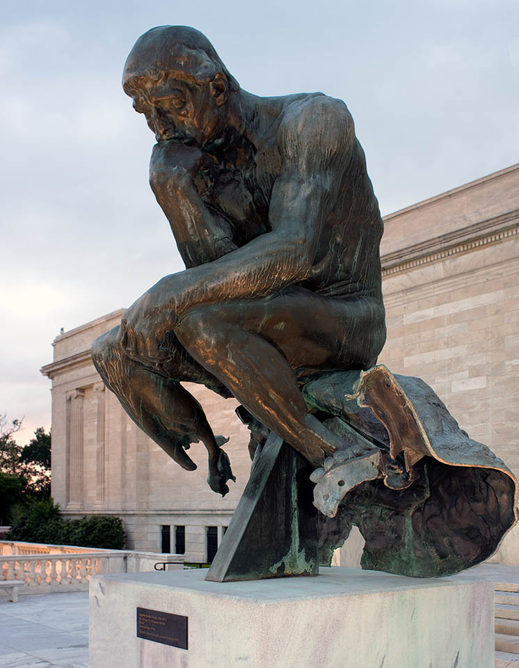 Rodin’s The Thinker, is on display at the old front entrance into the Cleveland Museum of Art. The statue was damaged and reinstalled after being blown off its pedestal in 1970.